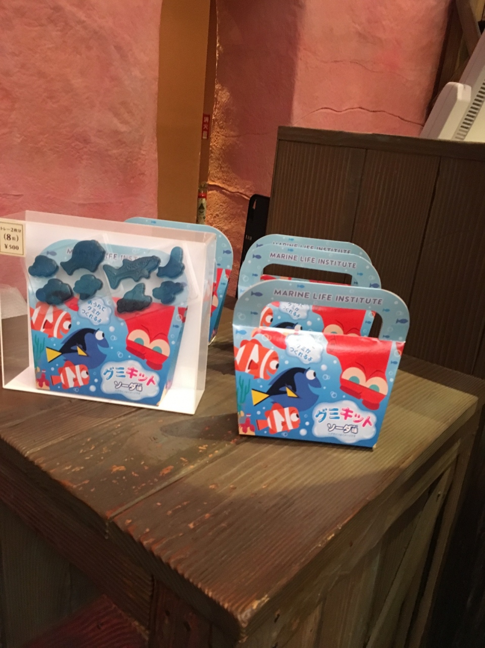 マーメイドラグーンの中にあるお土産屋さんです。3つお店がつながっている1番内側にあるお店です。スリーピーホエールショップでは主にお菓子や靴を購入することができます。イースターの期間限定のお菓子やグッズ、シーライダーのお菓子もたくさん揃っていました。組キットが気になり購入してみました。作ってみるのが楽しみです。
