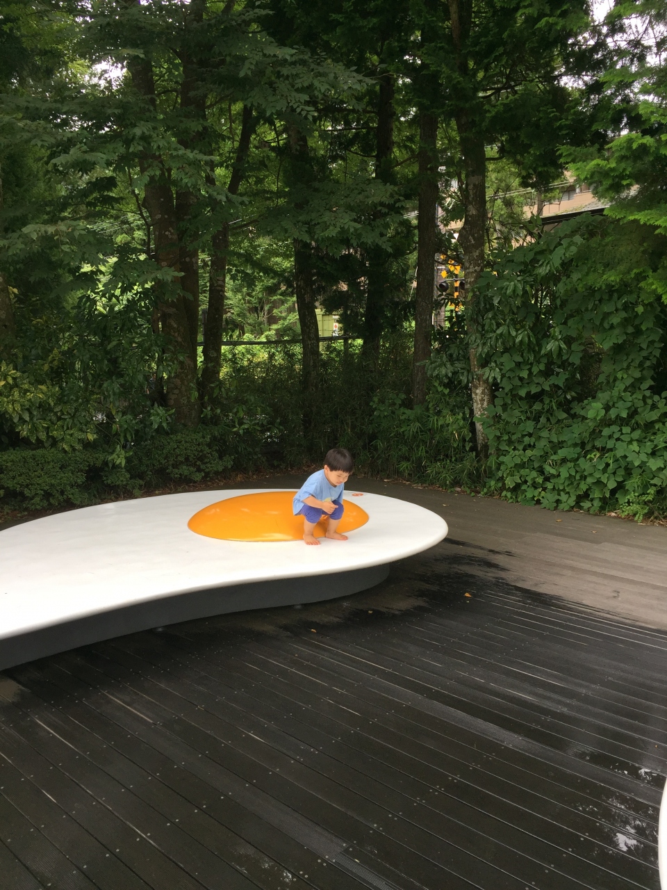 箱根登山鉄道は、長かったです。ただ、美術館についてみると車で到着している人が多かったような。駅から美術館へ向かう人はまばらでした。久々の彫刻にとても感動しましたが、幼児達は彫刻はあまりみず、ひたすら自然公園として走り回っていました。足湯、鯉がいる吊り橋など,アップダウンを繰り返すのでそれだけでも子供たちは喜んでいました。天候が突然変わるので雨具があるといいですね。滞在中は晴れたり、小雨だったり。真夏の暑い時期でしたが熱さを感じませんでした。