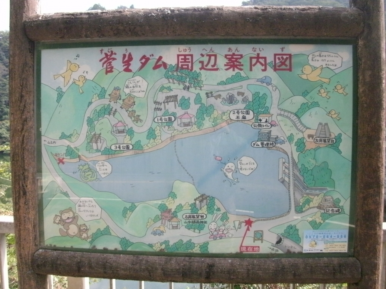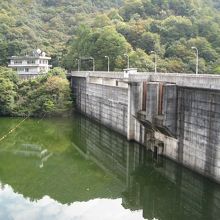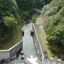 ダムサイト左岸に管理所があり、その傍に駐車場やトイレがあります。見学後、管理所を訪れて、ダムカードをお願いすると、ダムカードとダムの詳細が記載されたパンフレットを頂くことができました。