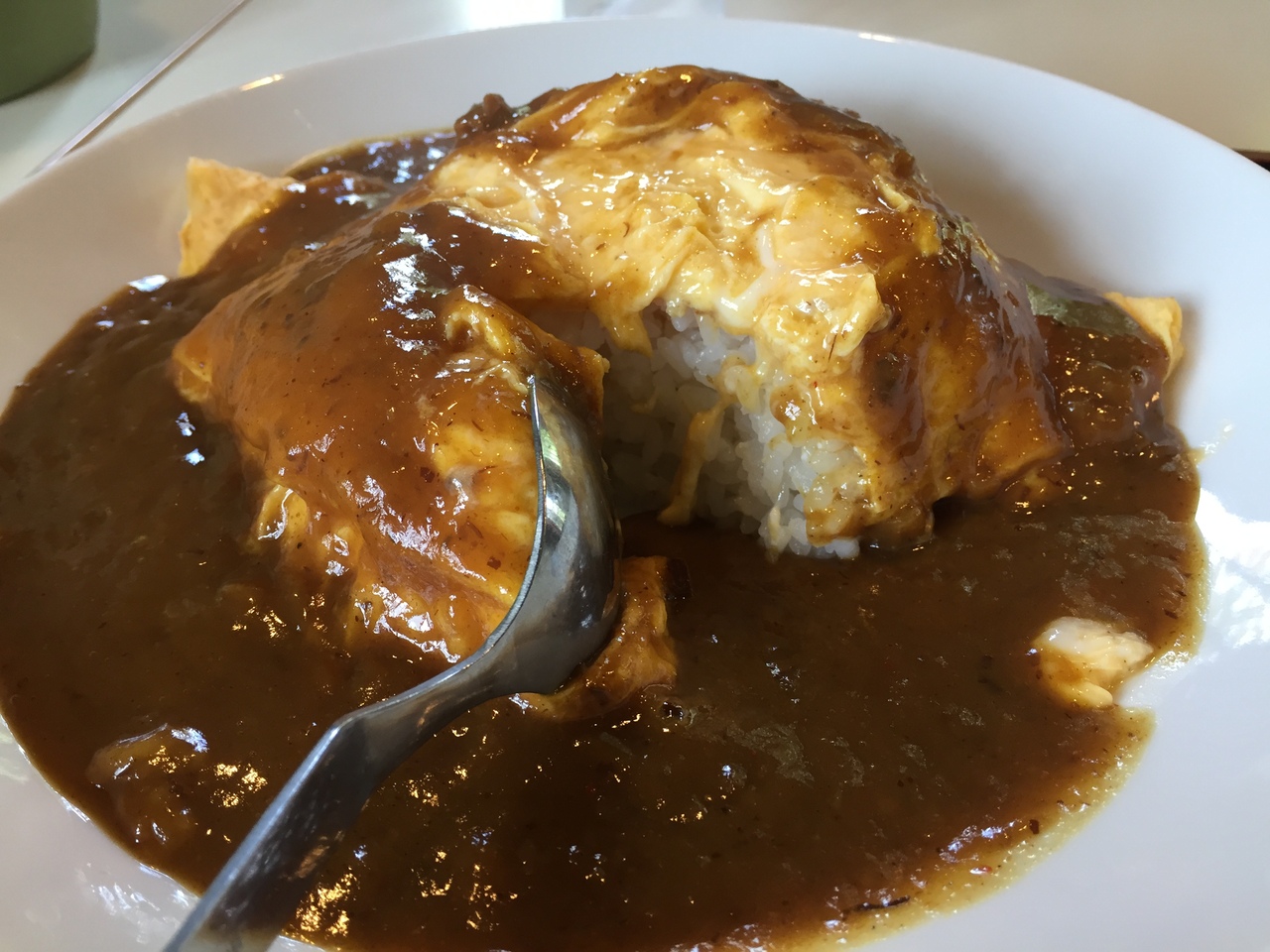 お薦めは焼きチーズカレーとのこと。定番はローストポークカレーらしいが今日はオムカレー。甘口なのだけど、辛さがジンワリ後でついてくるところがよかった。ビートルズが流れてました。