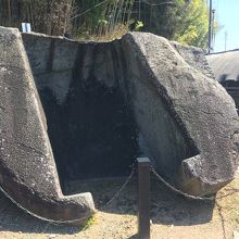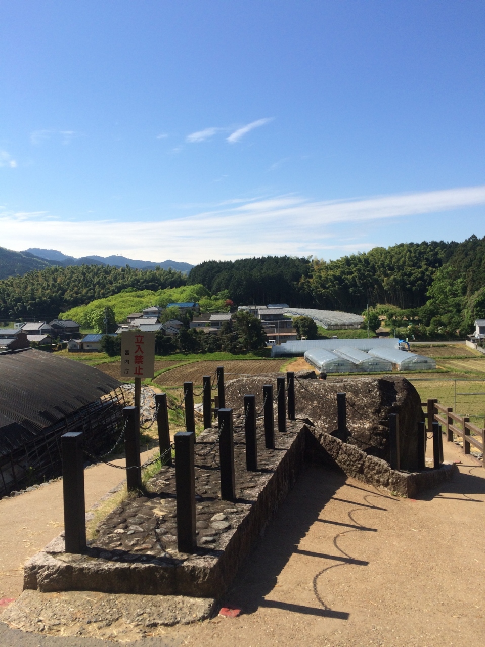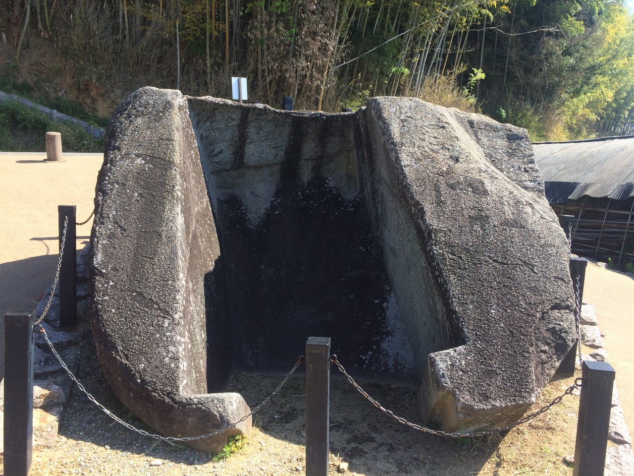 高いにあり周囲を一望出来ます。墳丘土を失った石室の一部で、見た目は名前のとおり雪隠に見えました。雪隠の上部の林の中には俎があり、此方も名前そのもの俎に見えます。雪隠は四方全て見ることが出来、正面から見た割れ目が迫力がありました。