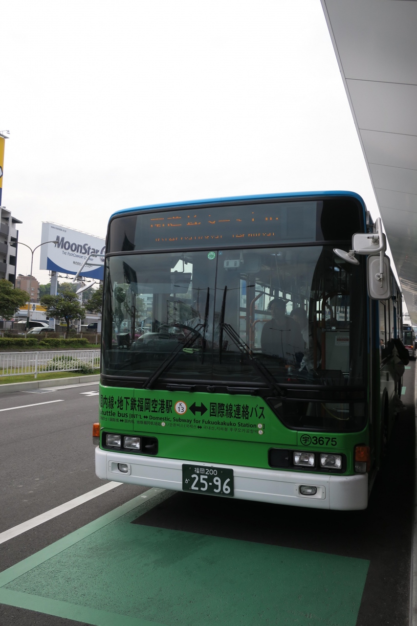 福岡空港の国内線ターミナルと国際線ターミナルを結んでいるバスです。もちろん無料で、数分おきに走っています。福岡空港の国際線もアジア線を中心にかなりの便数があるので、この連絡バスも乗り場には行列ができるほど混んでいました。