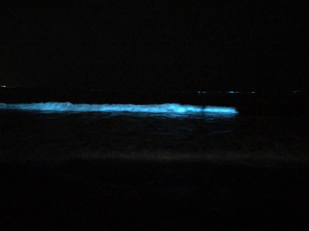 ニュースでも取り上げられた夜光虫です。只今、夜中の3時頃の由比ヶ浜海岸です。中々見られない不思議な体験!夜光虫!真っ暗なのに波が青く光っています。綺麗です。家からバイクですぐなのですが観光客がこの時間にもかかわらず見に来ていて、パトカーも出動しついました。
