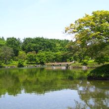 広大な国営昭和記念公園の真ん中よりやや北側にあります。池泉回遊式庭園でこちらも広大です。池を中心に飛び石があったり、八つ橋があったり池の縁も散策できるようになっています。
