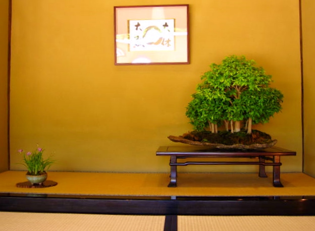 広大な国営昭和記念公園の日本庭園の奥にあります。盆栽園自体はそれほど広くありませんが、様々な盆栽が展示されています。樹齢100年を超える立派な幹の盆栽も多く見応えがありました。珍しいものでは、熱帯性の木花のブーゲンビリアの可愛らしい盆栽などもありました。盆栽のイメージが変わりました。