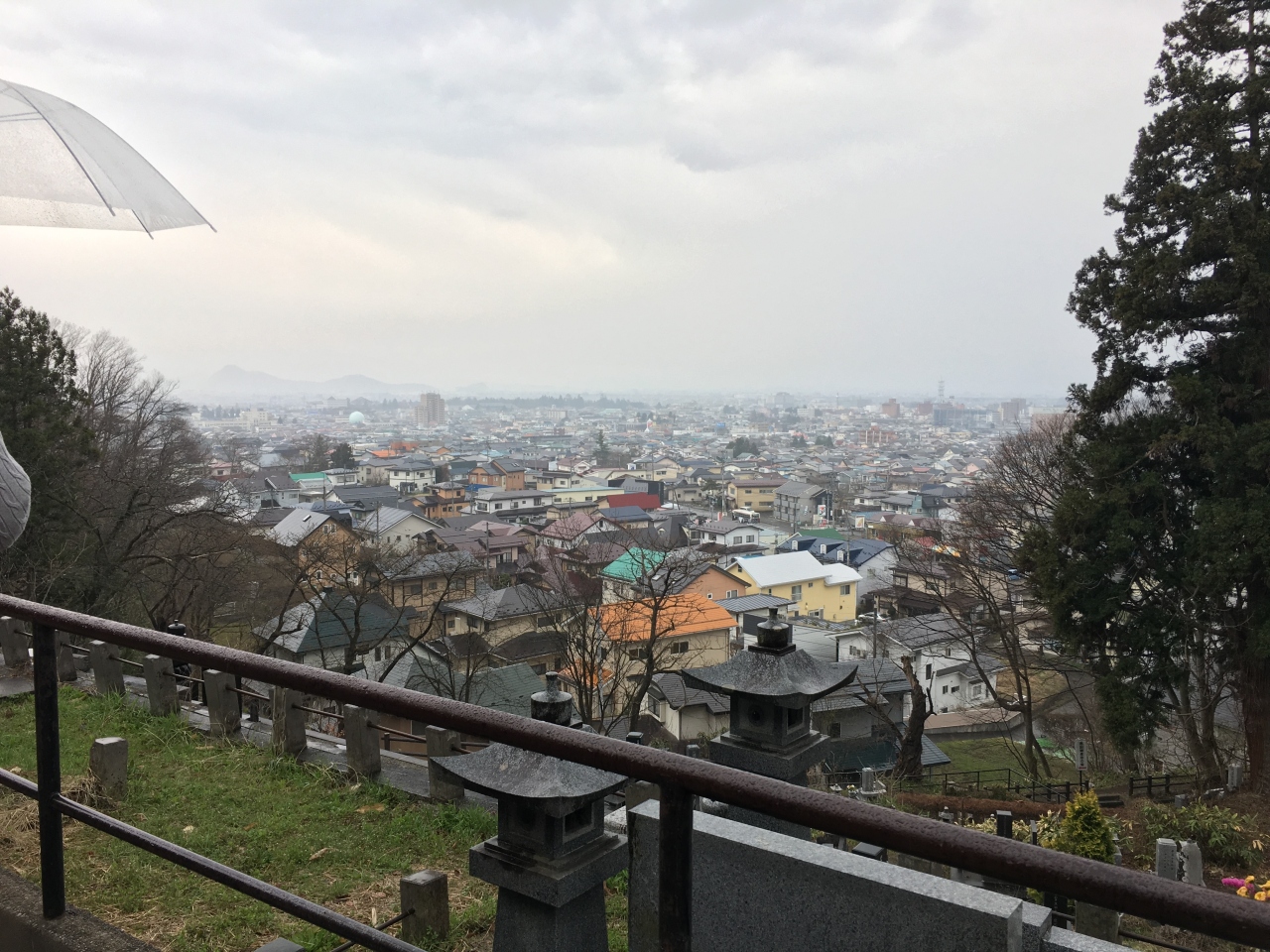 自刀の地からは、雨が降っていたせいもあり鶴ヶ城がかなり遠くに見えました。ビルに埋もれていますが、昔はお城だけが見えたのでしょう。白虎隊の像もあり、思わず手を合わせてしまうような神聖な場所のように感じました。
