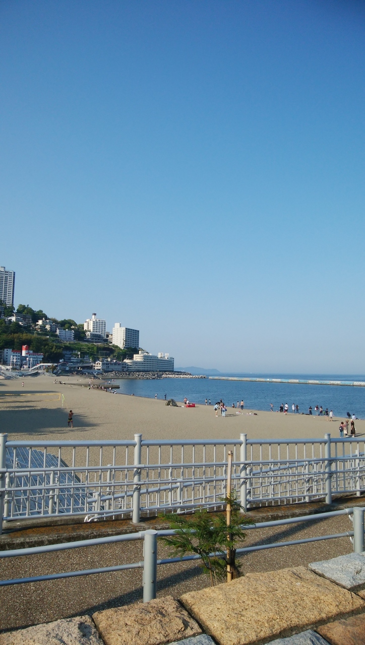 熱海の温泉街に面している海岸です。立ち寄ったのが、5月の中旬の土曜日の夕方にちかい午後でしたが、意外なほど海岸に人が出ていました。海岸そのものは決して大きなものではなく、人工的につくられ整備されたビーチですが、自然な感じですし、水質も悪くなくきれいです。今回は海水浴シーズンではない時期の訪問でしたが、逆にざわざわした感じが全くなくて、まったりとした感じがあって、ゆっくりすることが出来ました。海水浴世代でない人にはこの時期はおすすめです。