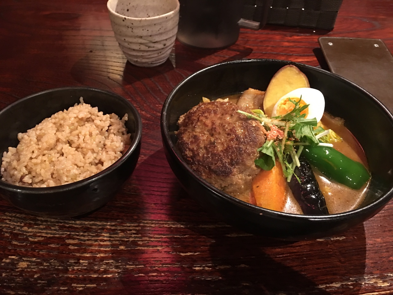 平日月曜の11:20頃に行きました。すでに行列ができていて40分待って入りました。もくおくスープという海老焙煎スープ、ハンバーグ、玄米ご飯という組み合わせで注文しました。スープは海老の香りがどこにするのかなという感じでした。コクもなくごく普通のスープカレーでした。自分にはスープカレーの味がよくわからないのかもしれませんが、美味しいという感じはしませんでした。これで1650円。スープカレーは卒業です。