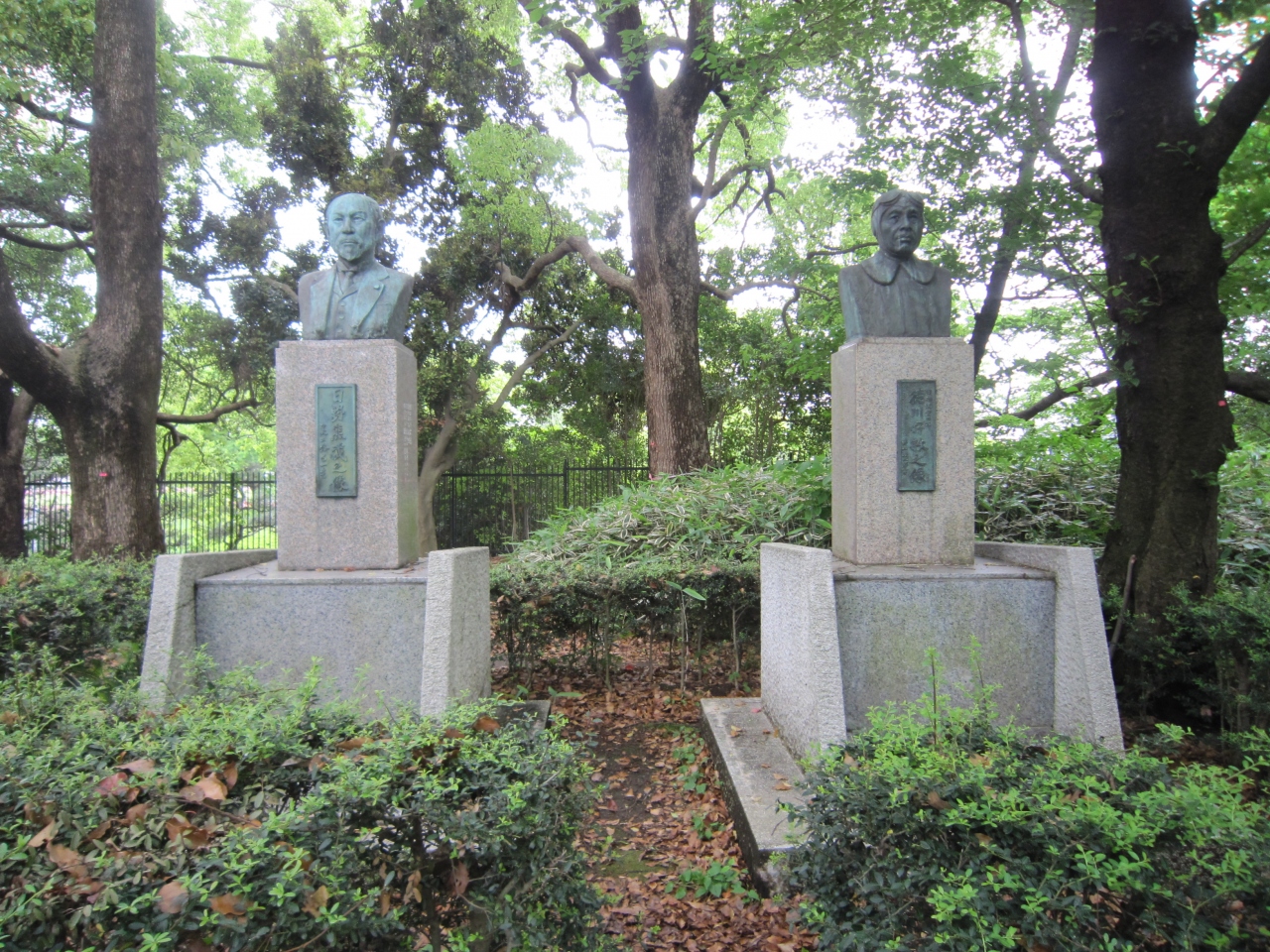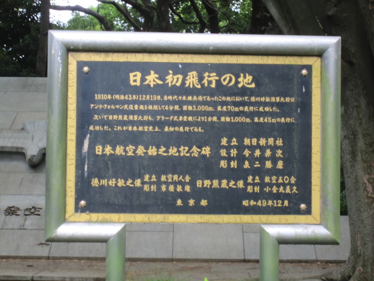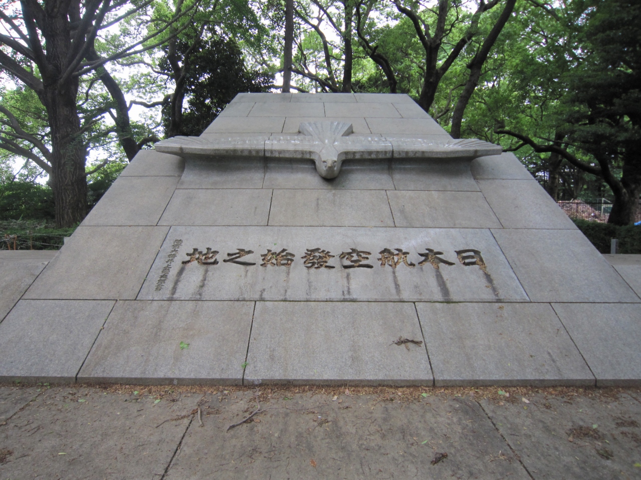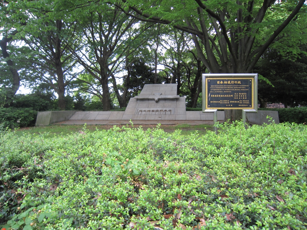 代々木公園南門から入り左手先に横長の大きなモニュメントがありました。その横に2体の胸像があります。明治時代にこの地は日本航空史上最初の飛行をしたところだそうで胸像は初飛行した人のようです。今も広い公園ですが、当時も広い所だったのですね。初めてこの地が初飛行の地であること知りました。人通りが少ない所にあり大きなモニュメントでもあまり目立ちません。南門からモニュメントの入る細道に小さな表示石があり、西門にも同じようにありましたが、目立ちません。園内案内板にはあるのですが来園者に知って貰うためにはもっと大きな表示が必要でないでしょうか。
