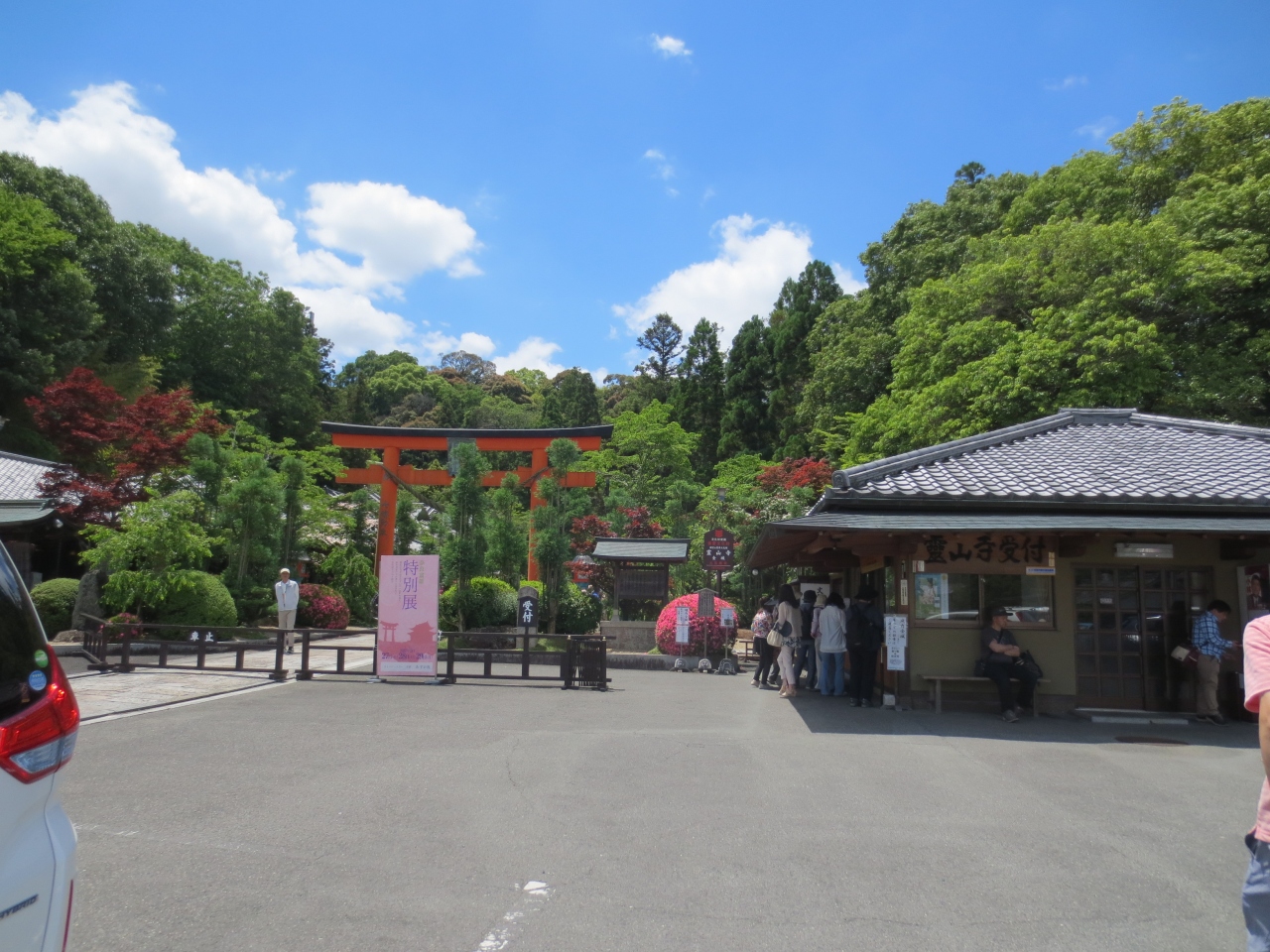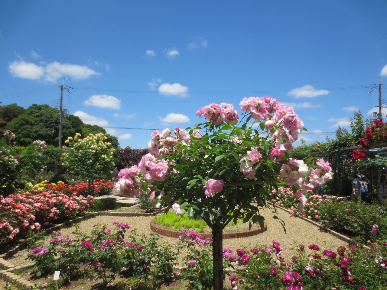 駐車場も広いのですが、日曜日で晴天、薔薇の季節なので、多くの人でした。