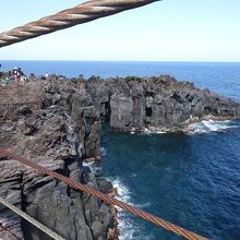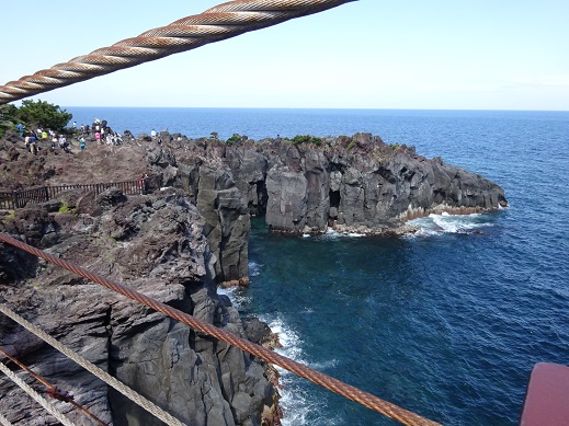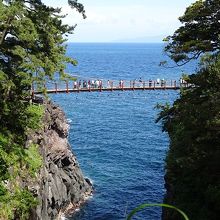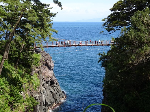 ピクニカルコースの中でメインとなるのがつり橋とその近くにある門脇灯台です。 駐車場ちかくに展望デッキがあってそこからつり橋を望むことが出来ます。樹々の緑、海の青、断崖の茶のコントラストが美しいです。つり橋へはわき道を入ってすぐのところにあります。つり橋を渡ると灯台に出ます。つり橋は比較的堅牢に作られているのでそれほど恐くはありませんでした。灯台は螺旋階段を登って一番上まで行くことができます。灯台の前に売店と自販機があり、清潔なトイレが周辺に2ヶ所ありました。