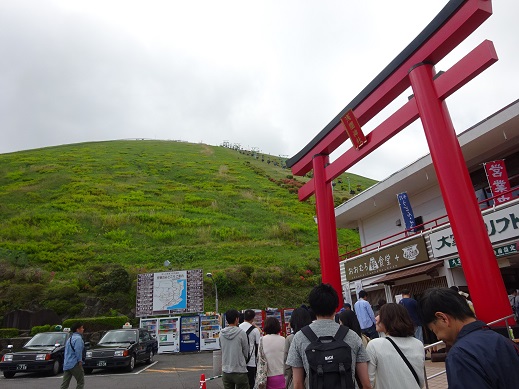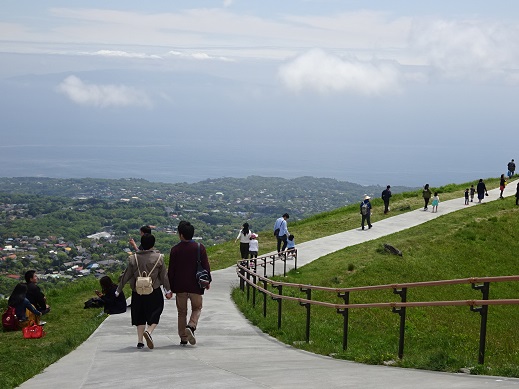 山の上は遊歩道が整備されていて一周20分ぐらいで歩くことが出来ます。アップダウンがあまりないので高齢者も多く見かけました。GW中に行ったのでリフトに乗るまでに長い行列が出来ていて、40分ほど待たされましたが、それでも登る価値はあると思います。リフト乗り場横で売っているわさびアイスもお試しください。