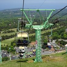 お椀を伏せたような小さな山ですが、東側に相模湾、西側には伊豆の山天気がよければ富士山も望むことが出来ます。山頂へはシャボテン公園バス停前から出ている2人乗りのリフトが通じています。小型犬なら抱えて乗ることができるので犬を連れた人も多いです。リフトは大きめなので二人で乗って間に鞄を置いても窮屈感はありませんでした。