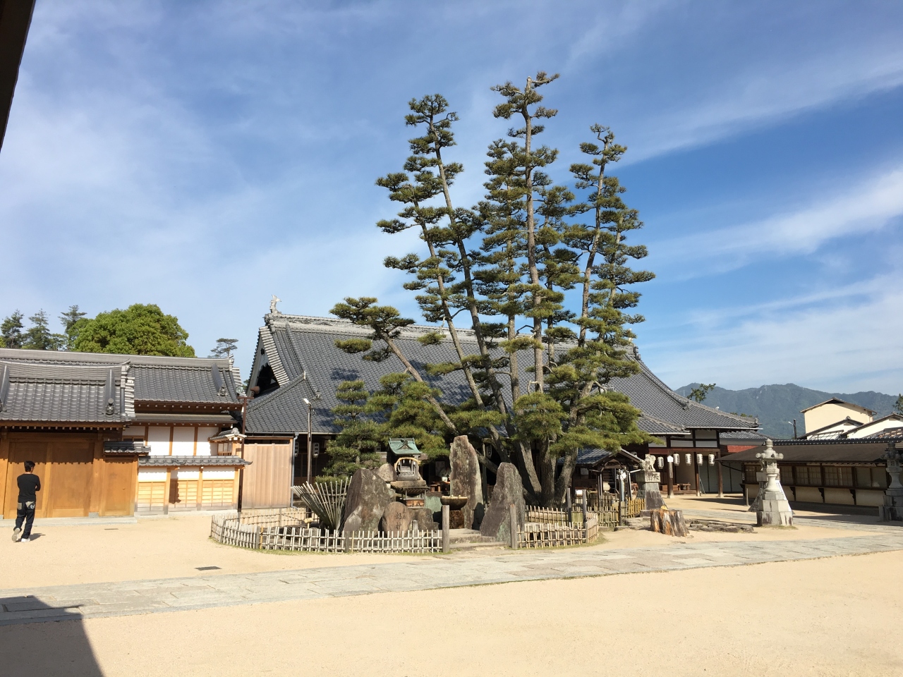 厳島神社の出口を出ると目の前にあるのがこの大願寺。まずは門だけが目に入ると思いますが、その奥の水場では弁天様を祀っているということです。なにせ目立つのが不思議な松の木。根元から放射状に9方向に幹が生えていてとても珍しいと思いました。それだけでも一見の価値がありました。