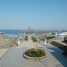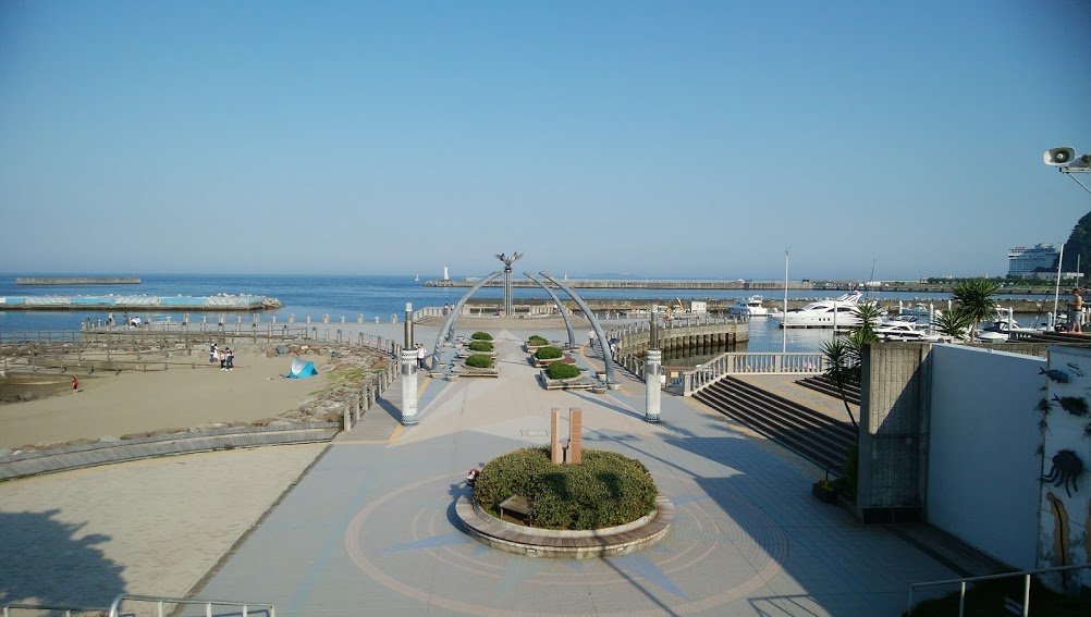 熱海駅から徒歩だと20分ぐらい歩く場所にあります。熱海サンビーチと熱海港に挟まれた場所の熱海サンビーチ寄りにある、比較的新しさを感じる公園です。公園の分類で行けば臨海公園の位置づけの公園だと思います。湾曲して海側の護岸がつくられており、シンボルの塔のような建造物が設置されています。意匠設計のテラスです。砂浜は足に砂が入っていやだけど、海は間近で感じたいということであれば、こちらがぴったりの場所になると思います。