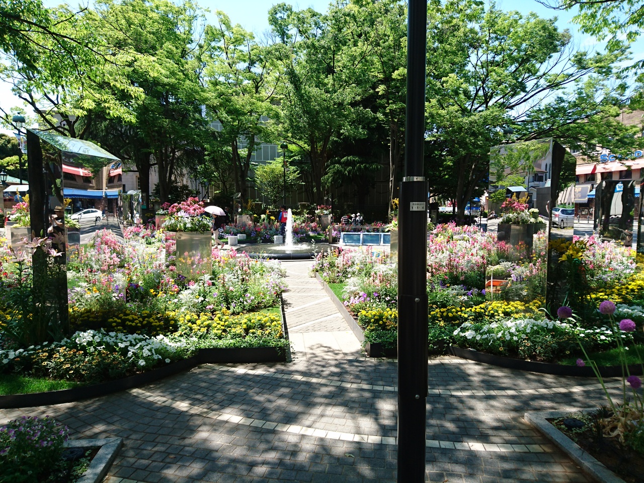 1月に訪れたときは緑化フェアにあわせて工事をしていましたが、先日訪れたときはは工事が終わり、緑化フェアにあわせて噴水の周りに綺麗な花壇ができていました。