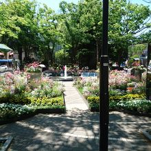 リニューアル後の噴水周りは花畑