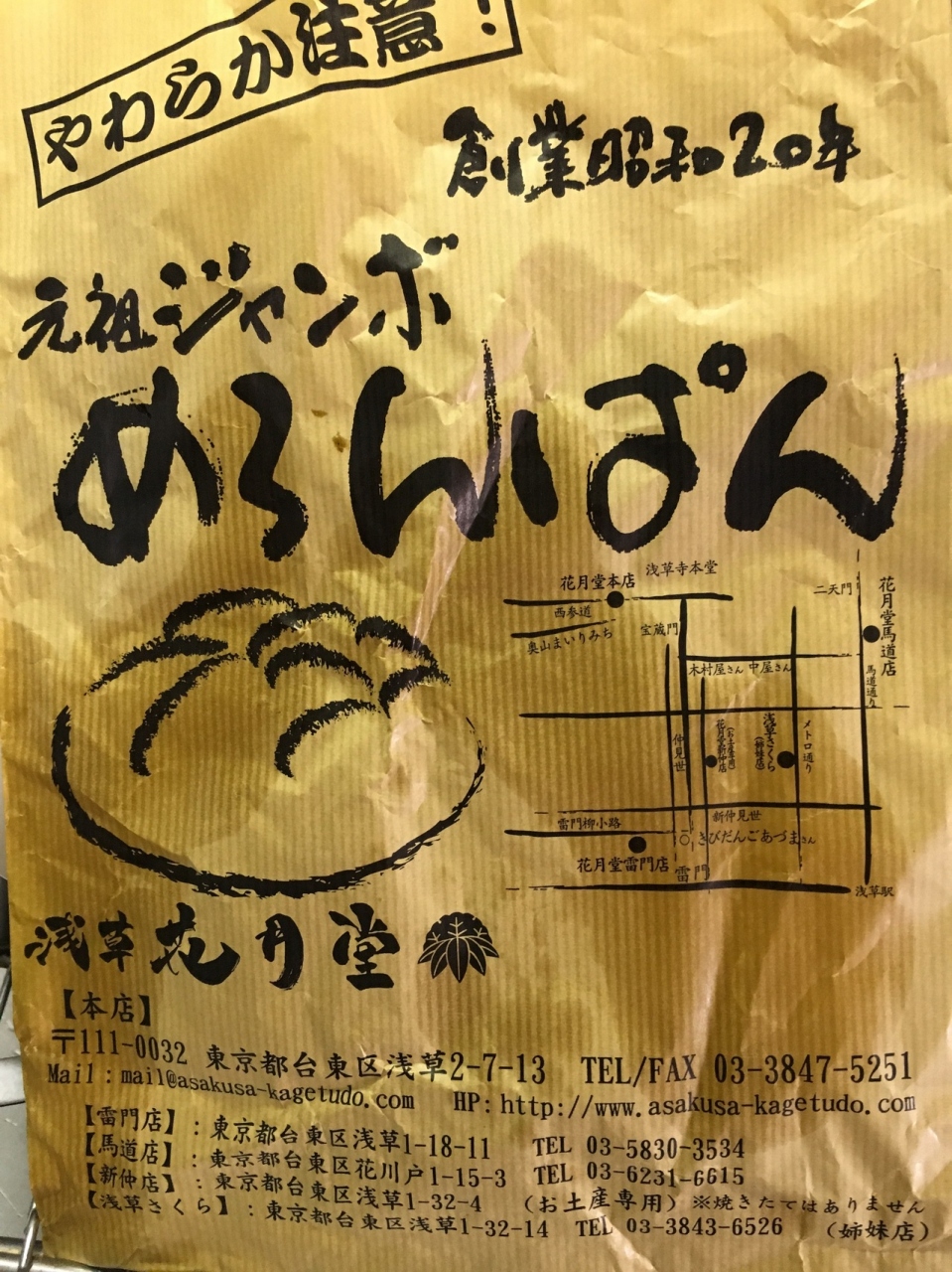 浅草にあるジャンボメロンパンのお店です。以前テレビで何回か取り上げられていたため気にはなっていました。ちょうど浅草に行く用事があったためついでに購入してきました。本当に大きなメロンパンで食べ応えバッチリです。