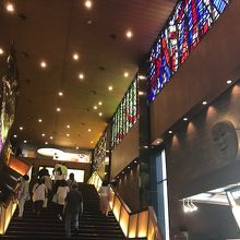ステンドグラスや階段が昭和建築らしいレトロ感があります。