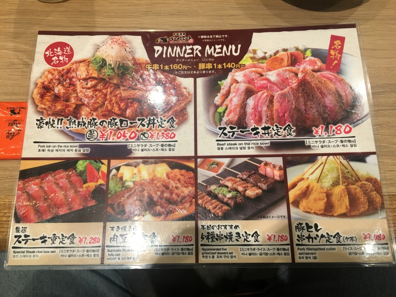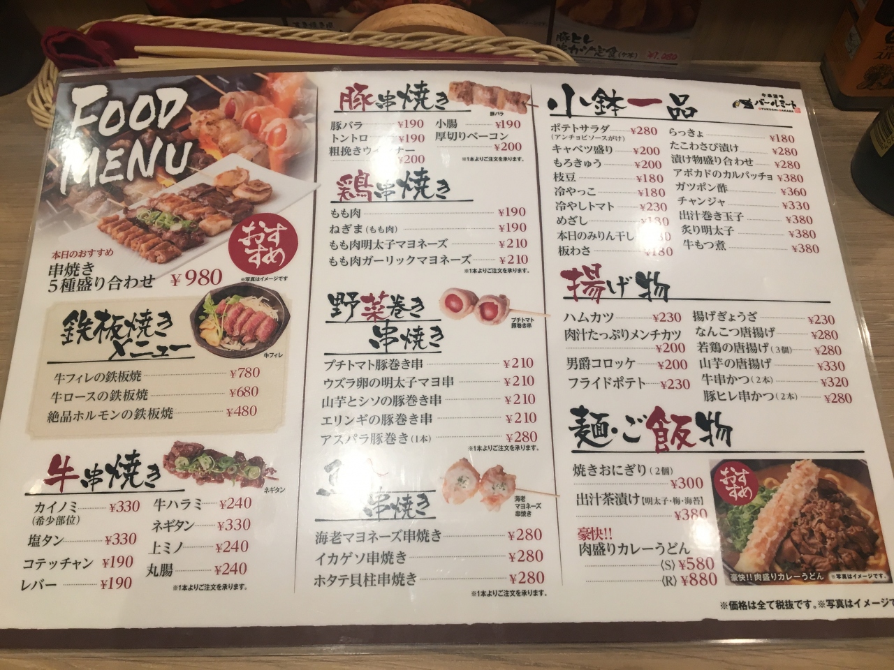 なんばウォークにあるお店。牛串など、お肉の居酒屋さんといった感じ。