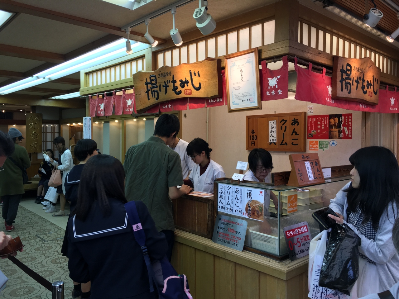 厳島神社一帯を見てまわり宮島を後にする前に最後に甘いものでも食べようと、こちらの揚げもみじを食べました。店頭には修学旅行の学生をはじめとして、揚げもみじを求める人で長蛇の列!揚げもみじはいくつかの種類がありましたが、ベーシックなあんこを購入。気になるお味は、まぁありかなぁという感じ・・。個人的にはもみじまんじゅうそのままの方が好きでした。