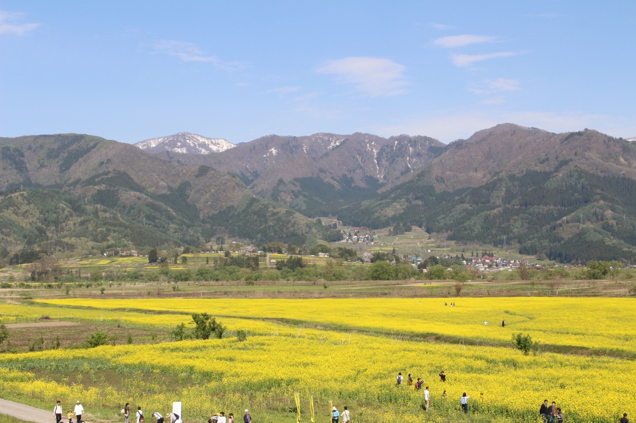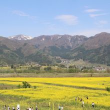 菜の花が有名な飯山ですが、ここの道の駅の道路を挟んだ河川敷に広大な菜の花畑が広がっていて見事な景色でした。