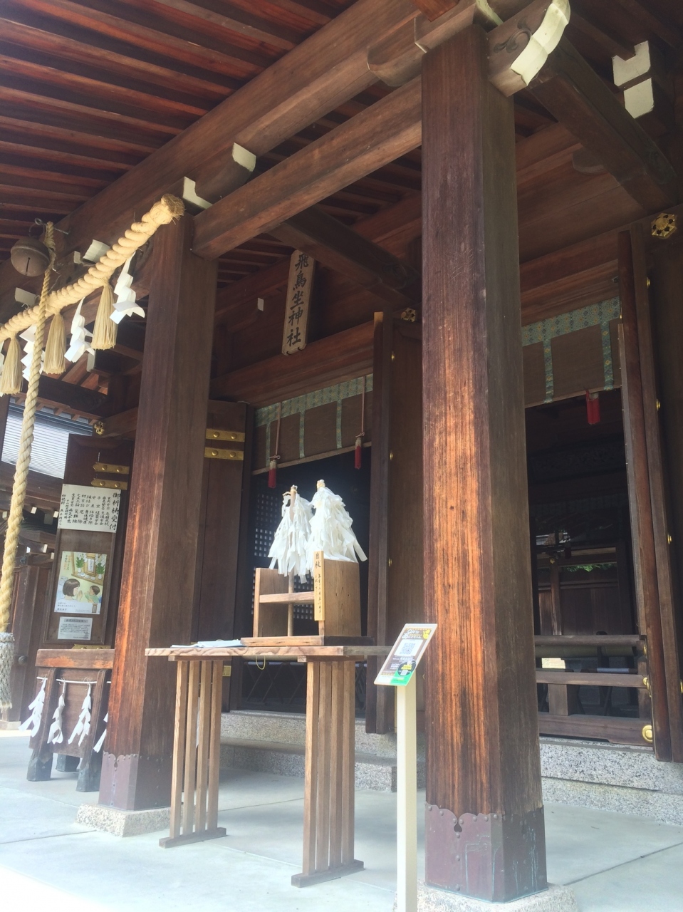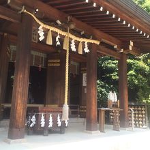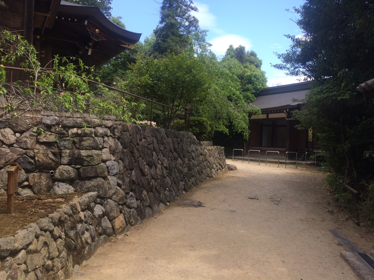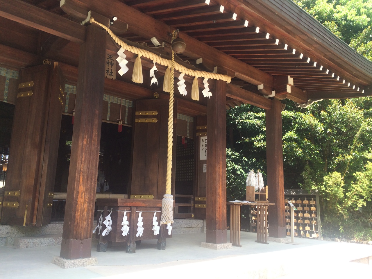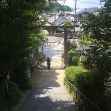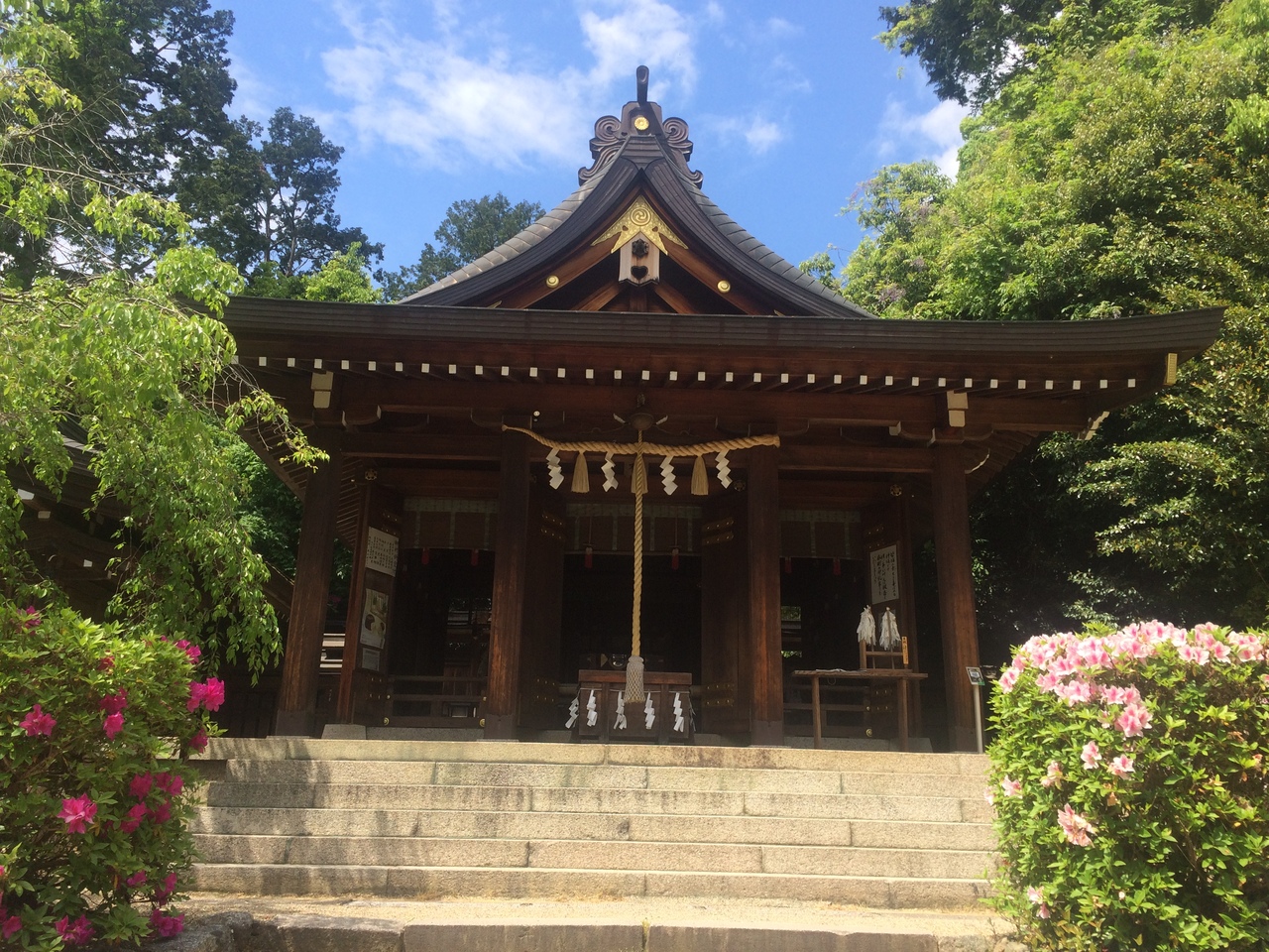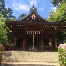 階段を登ると、男は左手、女は右手で持ち上げると幸福になると言われる力石があります。境内は木々に囲まれて新緑の色が見事でした。社殿は木造造りで伝統を感じました。少し高台にありますが周辺の景色は木々に囲まれているため見ることが出来ないですが、階段下の雰囲気が神社らしく良い景観でした。