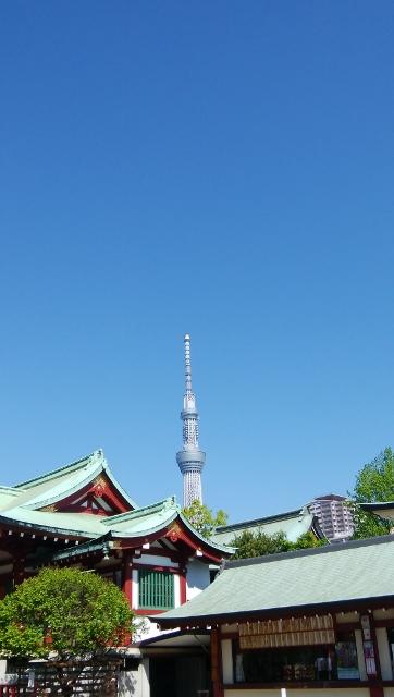 こちらは亀戸の駅から徒歩15分ぐらいで錦糸町からも同じぐらい。スカイツリーまでも歩いて20分ぐらいでいけます。この神社の中にはいると池がはって橋が架かっていたり庭園もこっています。しかも無料で見学可能。スカイツリーは高さがあるので、この神社からもよく見えて、一緒に写真がとれます。