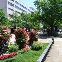 銀杏並木の続く大通りは、現在都市緑化よこはまフェスタの会場の1つとなっており、18の自治体が出展した花壇がならんでいます。