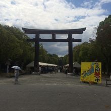 広い敷地で大きな鳥居があり、その先も参道が続いていました。鳥居の周りには出店がいくつかあり賑わっていました。参道の左右には大木が並んで神様が出てきそうな雰囲気でした。道路沿いも整備されていて由緒ある神社でした。