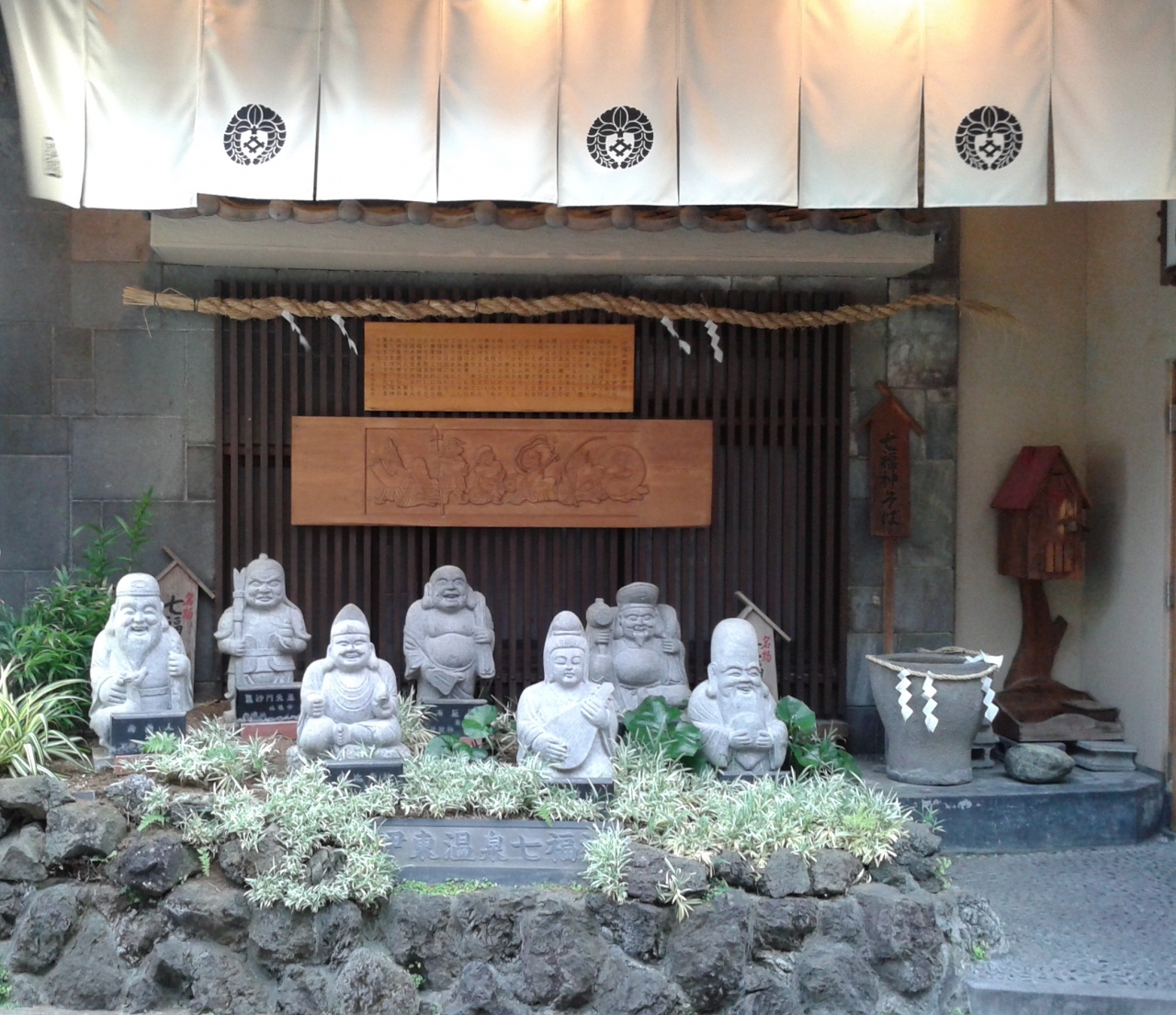 湯の花通り全体的に人が少なく、シャッターが降りている店も多く、寂しい感じがします。商店街だけでなく町全体の問題かも知れません。でも商店街では七福神のスタンプラリーをやっていて盛り上げようとしている姿勢も感じられました。なんとか頑張って欲しいです。