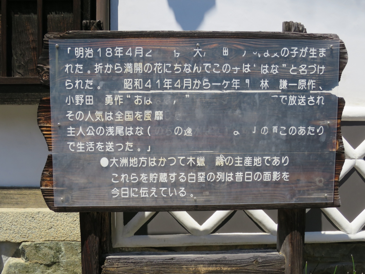 大洲まちの駅あさもやから臥龍山荘方面に行ったところにおはなはん通りはあります。NHKの朝ドラ「おはなはん」のロケ地となった所で、側溝には鯉が泳ぐきれいな水が流れ、花が飾られ、通りには当時の写真などが展示されていますが、写真の様な萎びた感じはなく、とてもきれいになってます。ある意味、昔のままの萎びた感じの方が哀愁があって良かったのではと思いました。