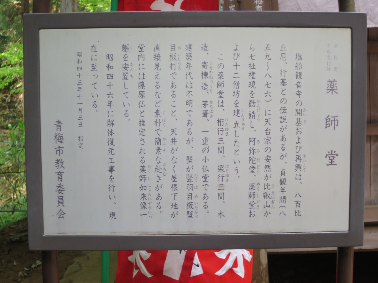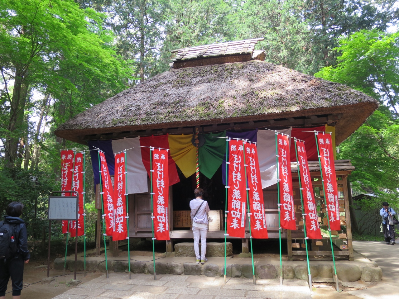 薬師堂前には「ぼけ封じ薬師如来」の幡が沢山立ち、年を取った人のお参りが多いような気がしました。