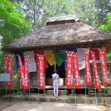 桁行三間、梁間二間の阿弥陀堂を小さくした様な小さな藁葺きのお堂です。とても似ているので、比較してみると面白いと思います。