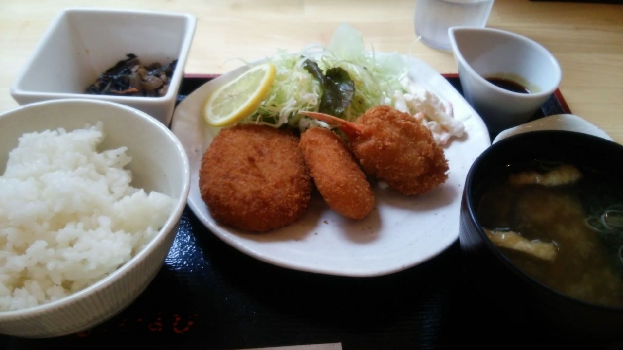 普通のコロッケに、カニの爪に、クリームコロッケと3種類乗って680円(ちょっとうろ覚えですが700円以下でした)