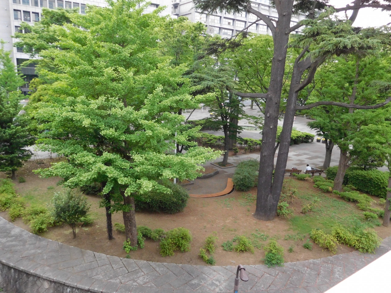 千葉都市モノレール1号線の終点「県庁前」駅を出て、すぐの場所にあります。道路を挟んで向かい側には、千葉県警察本部がありました。綺麗に整備された都市公園で、大きな木が多く、ほっと一息つけるような緑のオアシスになっていると思いました。