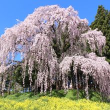 もともとは三春の滝桜が目当てで桜のシーズンに訪問しました。三春の滝桜もきれいでしたが、ここもそれに匹敵するほどの美しさでした。桜の花の咲きっぷりもすごいですし、周囲の菜の花もきれい、遊歩道の景色や高台からの遠景など、とてもすばらしい所でした。