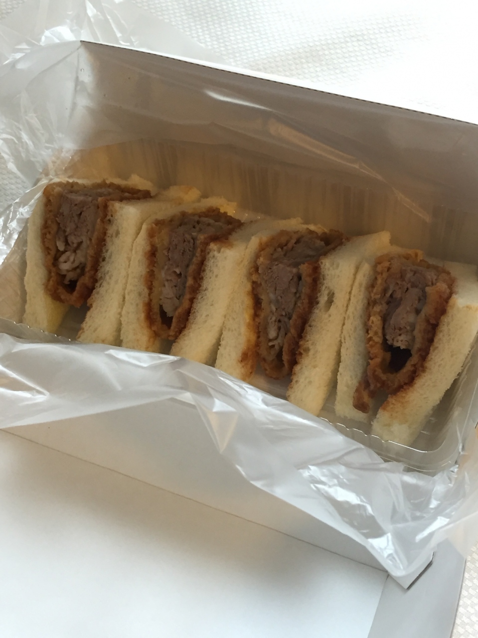 金曜日夕方,新大阪で小腹が空いたので,奮発してビーフカツサンドを買いました.ホテルへ入り早速賞味しました.三角形にカットされたカツサンドが4個入っています.ビフカツはミルフィーユ状のものでしたが,余りビフカツの旨さは感じられず.むしろ脂っこいしつこさが前面に.確かにトンカツサンドより高級感はありますが,1200円という価格に見合うだけのものは無いと思いました.