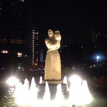 像を取り囲むように噴水が湧き上がってきて段々と高さを増していき、像と同じぐらいの高さにまでなります。