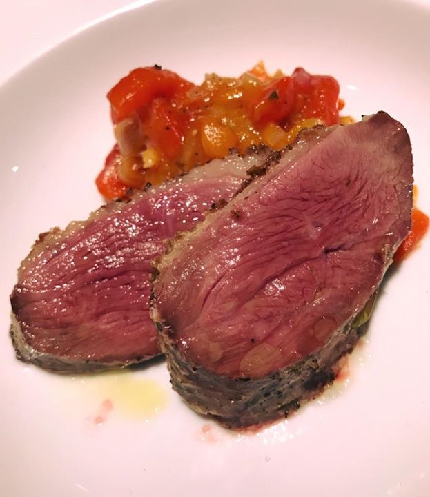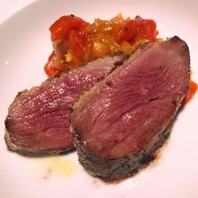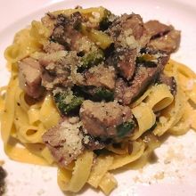 今回は平打ちパスタ・サーロインのロースト・鴨胸肉のロースト・キッシュを注文。
