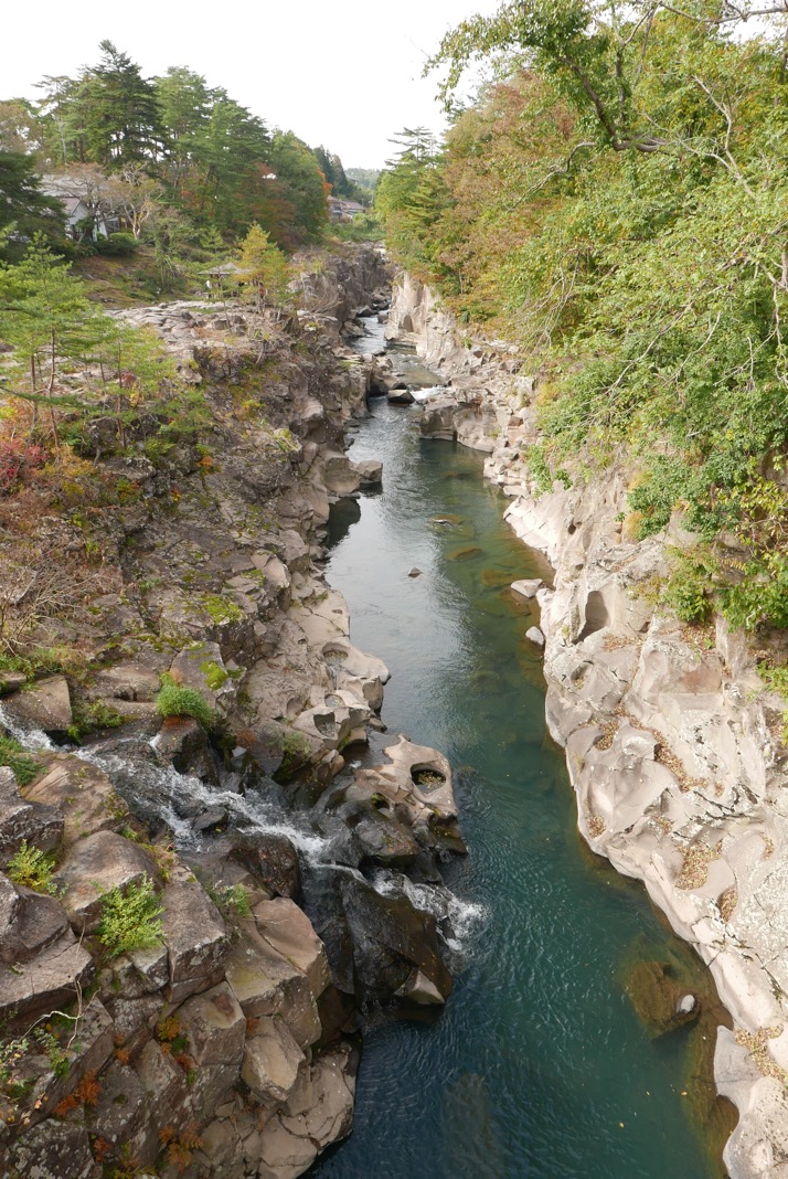 渓谷の景色はもちろん素晴らしいですがここには名物があります。空飛ぶ団子です。渓谷の上を団子が飛びます。漫画みたいな演出です。谷の反対側にある店から渓谷の東屋近くにロープを伝ってカゴに入った団子とお茶がやってきます。最初に注文用紙に個数を買いてお金をカゴに入れて合図をするとカゴがお店の方へ戻りしばらくすると団子が入ってやっていきます。このパフォーマンスを見たくて団子を買う人がたくさんいます。渓谷の風景も素晴らしいですがこの空飛ぶ団子は見ていて面白いです。