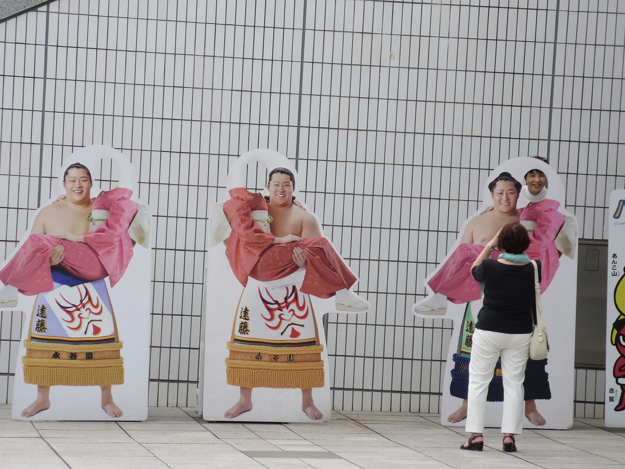 人気力士「遠藤」の「お姫様抱っこ」が両国駅前と国技館正面入り口入るとすぐ左に合計5個設置されています。