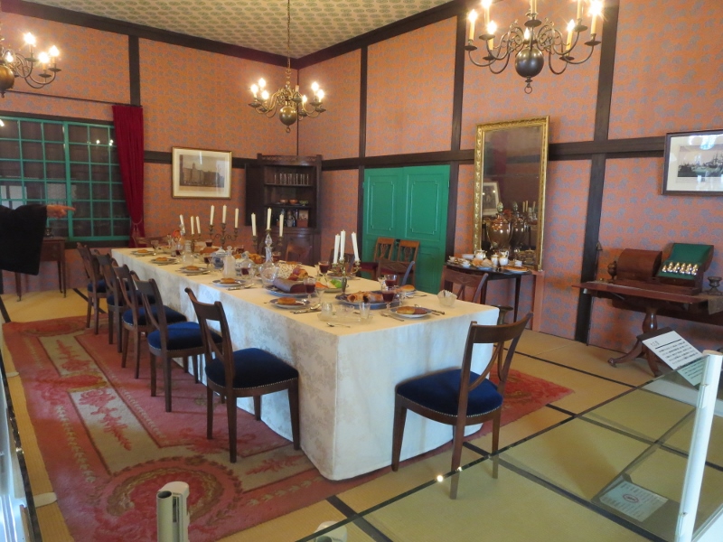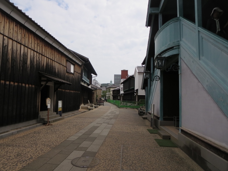 長崎の町を散策していると、出島の電停の前に由緒ありそうな建物が見えてきました。出島のオランダ商館を復元したものでした。入場してみると、ちょうどガイドツアーがあったので、案内してもらいました。昔の出島の跡地に、資料に基づいてかなり正確に復元しているとのことでした。2050年には往時の出島の姿になるそうです。