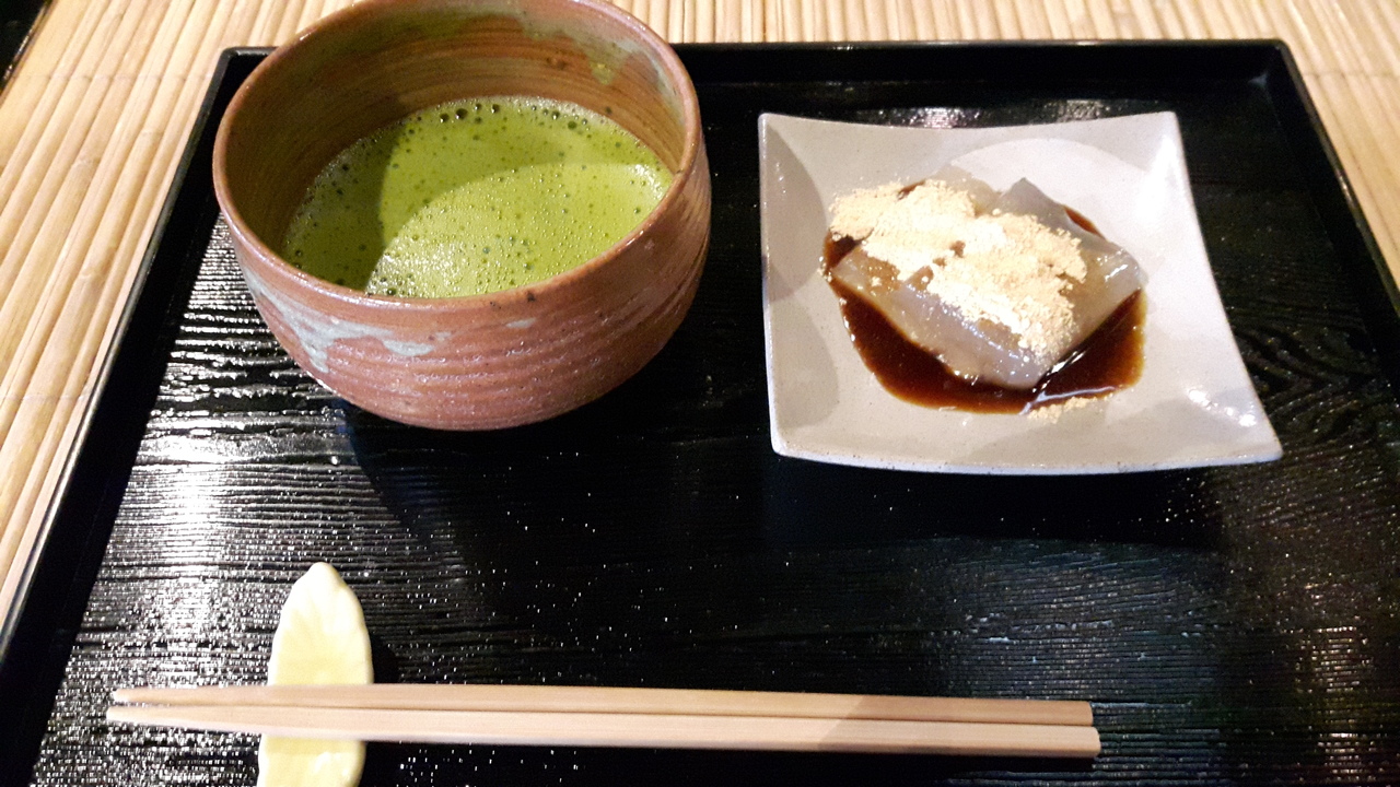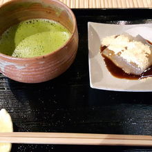 秋月の眼鏡橋から歩いてすぐのところで、駐車場も隣接しています。本当の葛の粉から作った葛餅は透明でつるつるした食感。葛は薬効もあるそうでいかにも体に良さそう。黒蜜ときな粉がかかっています。小麦粉から作るくずもちとはまったく別のものということがわかりました。