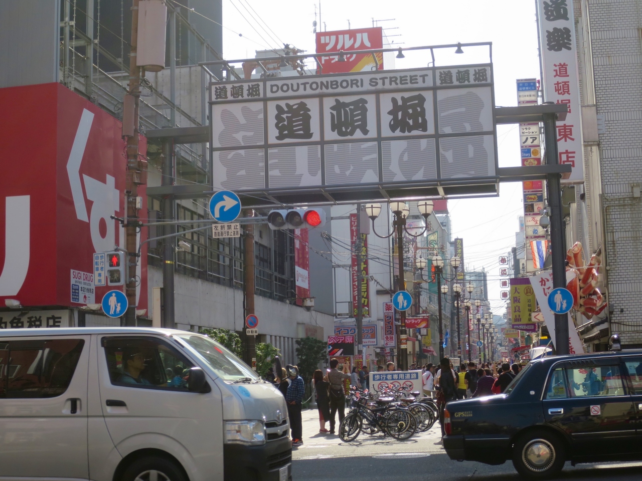 昼でも賑やかな道頓堀界隈。夜になると水面に周囲のビルのネオンが反射して一層鮮やかになり、その見ごたえたるや香港・尖沙咀のミニ版といった感じがしました。大通り沿いは夜でも観光客が多くて安心して歩くことができます。