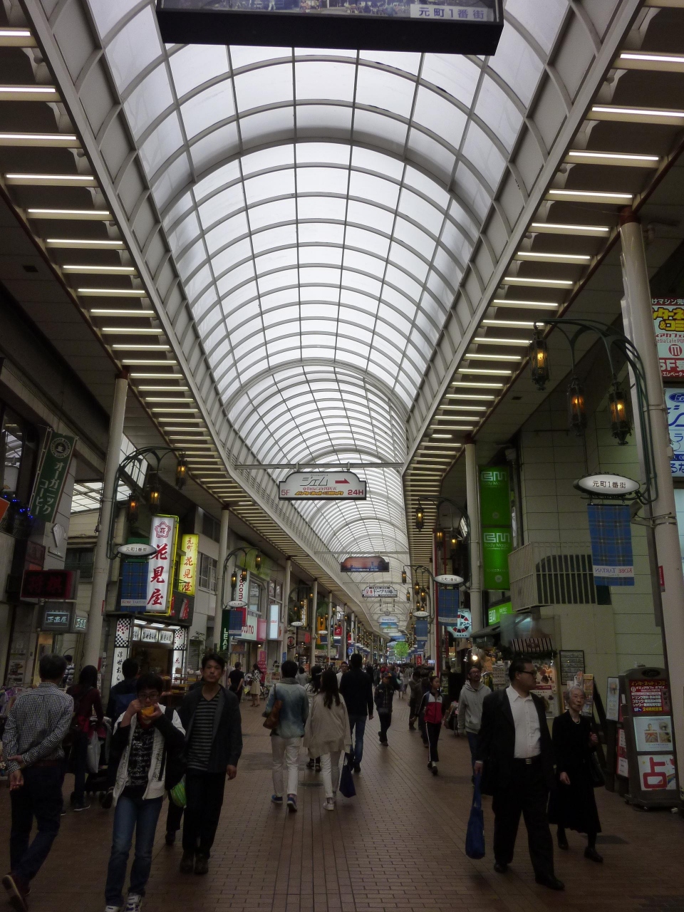 東はメリケンロードから、西はタワーロードまで東西に真っ直ぐに300の店がずらっと並ぶ。店が多いので、商店街途中に店舗ガイドを置いてくれています。そこには5つの種類別に店を区分けしてくれているのでですが、お店の名前しかないので、もう一つコメントがあると助かります。