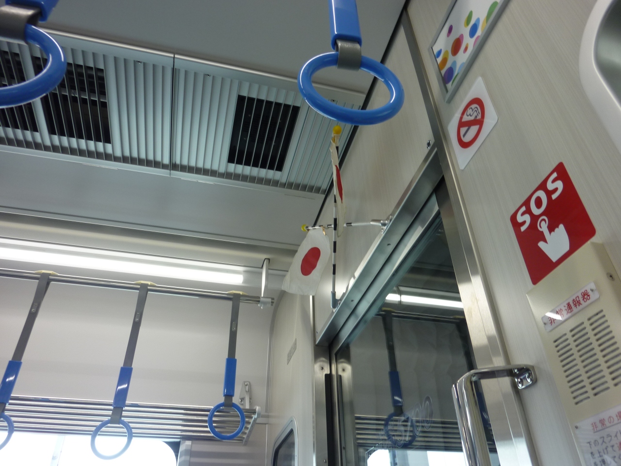 梅田から三宮までGWに利用したのですが、また大阪だからなのか阪神電車だからなのか驚かされました。祝日だったのですが、どの電車に乗っても、車両の両端に日本国旗のクロスが飾られていました。最近は家の軒先に出す人すら見かけなくなったのに、昔からの電車から、鉄道ファンが写真を撮っている新しい車両まで。大阪の異文化に触れた気分でした。