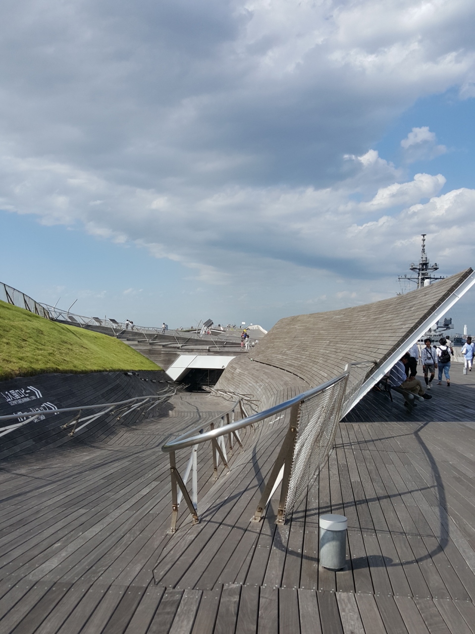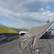 レストランを利用し、その後何となく上に上がってみるとまるで船(豪華客船)のデッキのような仕様になっており、芝生も多く子供たちが転げまわっていました^^;