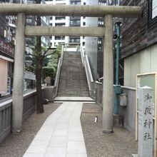 東京には山ではないのに階段を上らないと参拝できない神社がたくさんあります。この宮益御嶽神社もその一つ。都心の狭いスペースを有効活用しています。