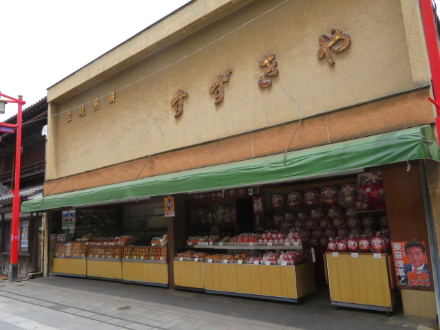 間口がすごく広いお店で多種類のお煎餅とだるまが売られています、煎餅は100円位からあり袋に入った煎餅は500円位からあり気軽に買うことが出来ます、西新井大師参拝のお土産として多くの人が利用しているようです、私が買った煎餅は軽くておいしく食べることが出来ました。